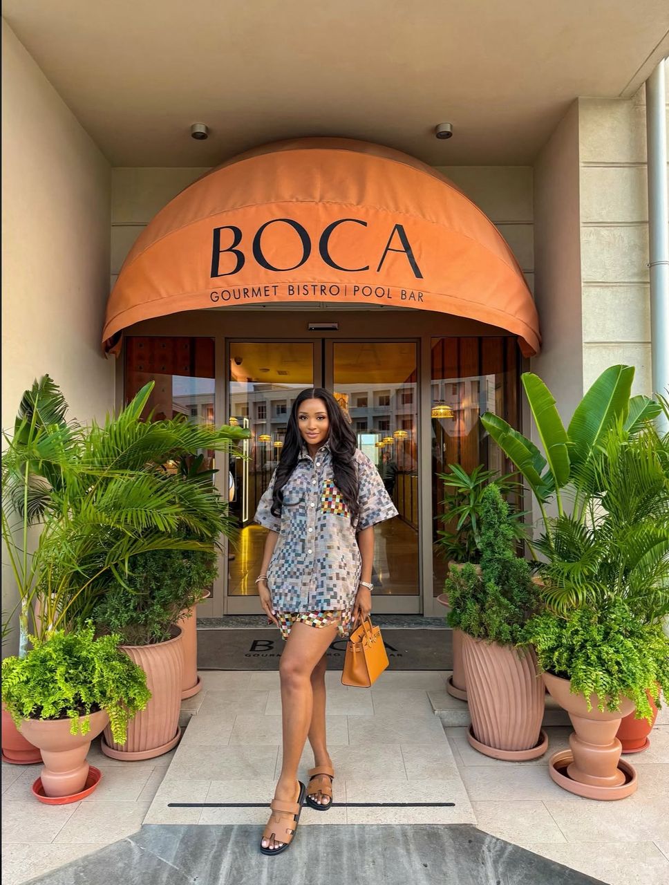 Color: Burgundy and Copper multicolored checkTwo-piece set featuring a long-sleeve button-down shirt and high-waist shorts in vibrant, breathable fabric.